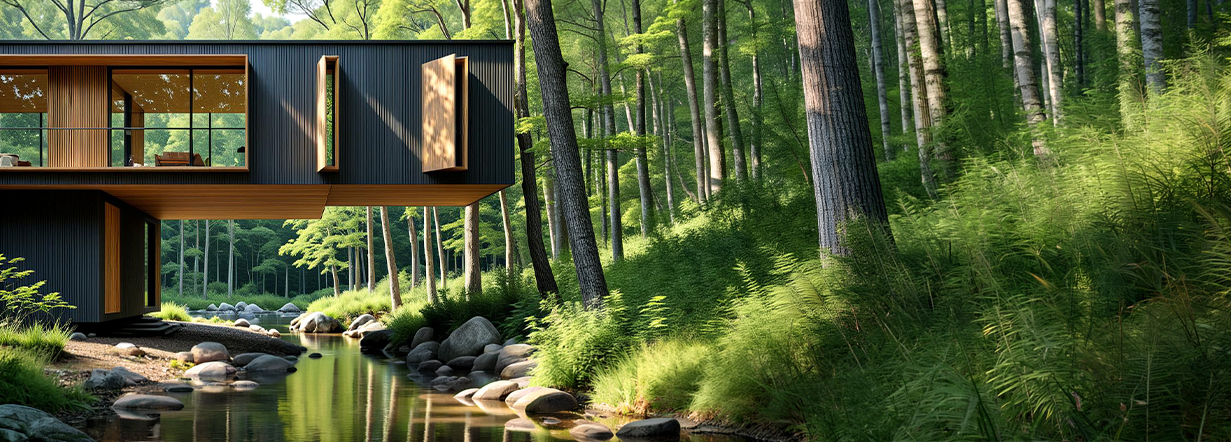Avvolta da un paesaggio boscoso e incontaminato, questa casa IDEHO parla il linguaggio della natura sin dalle fondamenta. È infatti stata concepita per adattarsi con leggerezza al suo habitat, senza imporre la propria presenza, ma piuttosto arrendendosi felicemente alla vegetazione selvaggia. Il progetto, che porta la firma di Ideho Sytem, ha seguito un principio semplice: lasciare che fosse la natura a dettare le regole.